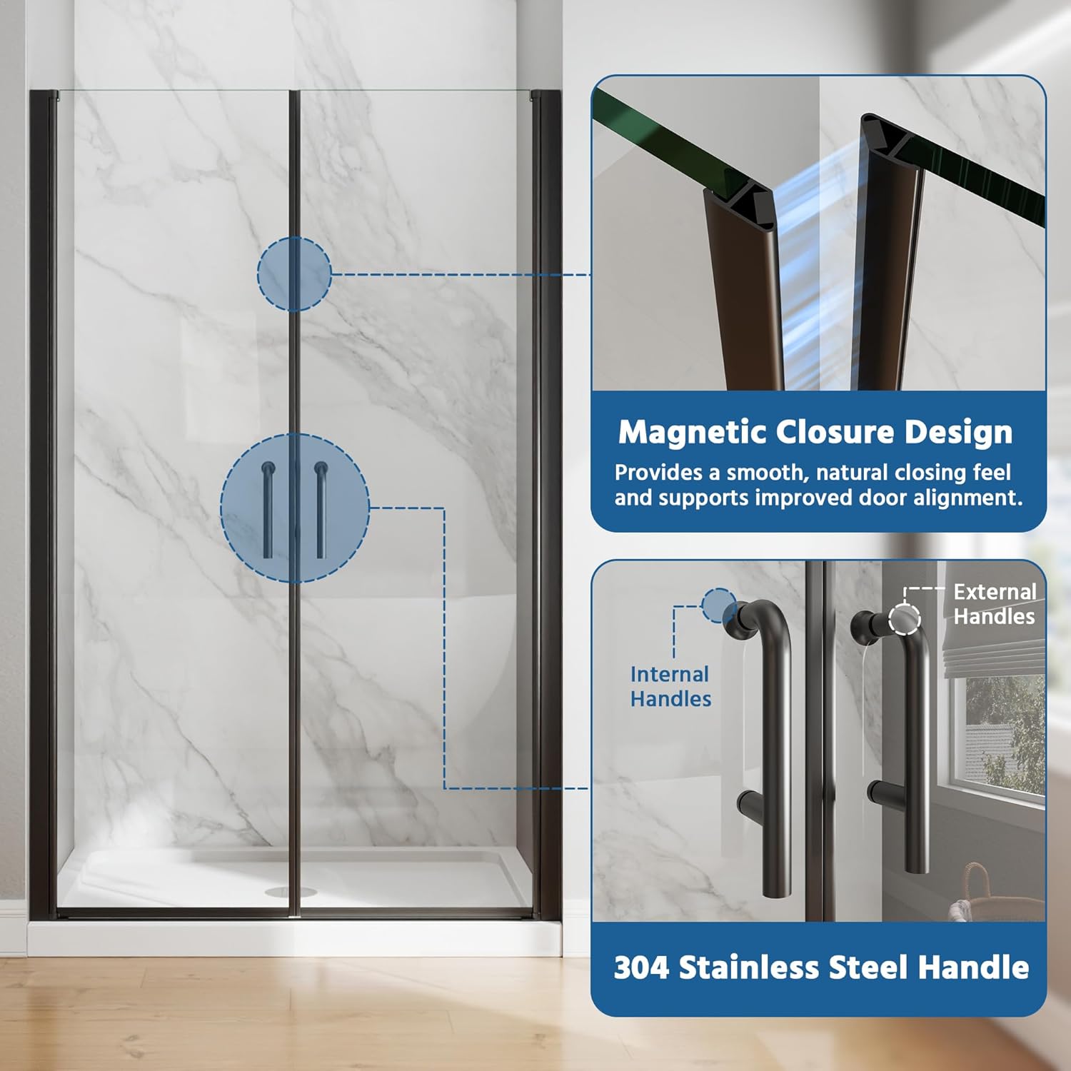 | Material Type | Aluminum, Shower Glass Door, Stainless Steel |
