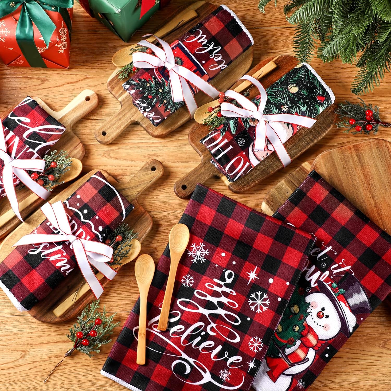 Features: Unique and functional Christmas kitchen gift: can be applied as kitchen decoration, serving tray, charcuterie board, or cutting board, combining aesthetics and functionality for long-term kitchen enjoyment. Versatile Christmas gift recommendations: suitable as Christmas kitchen gifts, home cook gifts, gifts for families, food lovers, friends, colleagues, mothers, and anyone passionate about kitchen and Christmas decoration. Specifications: Material: acacia wood, fabric Color: natural wood color, red, white, black, green Size: Cutting board: 11.81 x 6.3 x 0.59 inches/30 x 16 x 1.5 cm Towel: 15.75 x 23.62 inches/40 x 60 cm Wooden spoon: 6.3 x 1.18 inches/16 x 3 cm Ribbon: 52.49 ft/16 M. Package includes: 6 x Acacia Wood Cutting Board with Handle 6 x Wooden Cooking Spoon 6 x Red and black Buffalo plaid Christmas towel 6 x Artificial Pine Branch, 52.49 ft/16 M red and white bundling ribbons Notes: Manual measurement, please allow slight errors on size. The color may exist a slight difference due to different screen displays