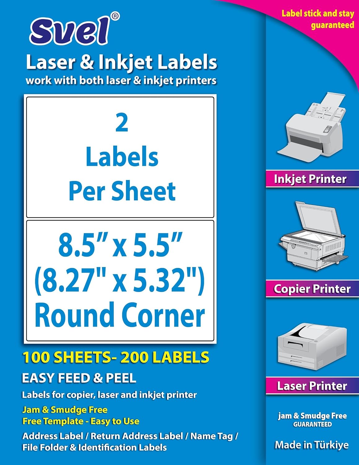 8.5”x5.5 Shipping Labels for Laser & Inkjet Printers, Permanent Self Adhesive Address Mailing Stickers Half Sheet