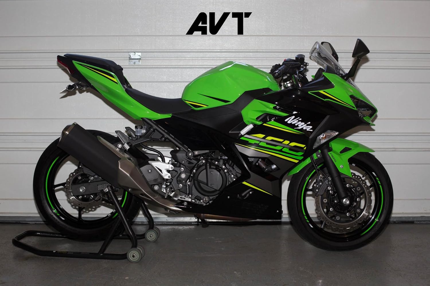The AVT Ninja 400 / z400 / Ninja 500 / z500 Fender Eliminator FLUSH NI Kit is designed from the ground up to dramatically improve the appearance of your Ninja 400/500’s tail as simply as possible. The kit includes everything you need to completely replace your stock fender and turn signals, with LED turn signals and an LED lighted license plate bracket! Installation is as simple as unbolting the OEM fender and installing our completely prewired LED turn signal kit that plugs in with OEM electric connectors. Proudly laser cut, powder coated, and hand assembled in the USA! Features:-Compatible with 2018-2024 Ninja 400 / z400 & Ninja 400 / z400 ABS / 2024+ Ninja 500/z500-Complete Plug-and-Play installation of all electrical connectors, with no cutting or splicing wires. OEM connectors!-No drilling, cutting, or otherwise modifying the bodywork of your bike is required.-2.04lb Weight reduction from removing OEM fender.Made in the USA.Kit Includes:-Lightweight Aluminum License Plate Bracket with LED Turn Signals-Mounting Nuts-Illustrated installation instructions*Please note that this fender eliminators does meet DOT guidelines but you are responsible for checking your local laws and regulations and avt-innovations will not be held responsible for any instances during its use.