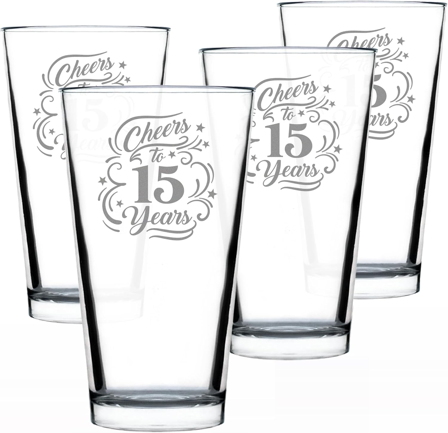 Unique custom 15th anniversary pint glass gifts for friends and family that are celebrating a milestone of 15 years. - Bar Quality Pint Glasses - 16 oz pint glass with heavy weighted bottom suitable for a hoppy ipa, a refreshing pilsner, or delicious craft stout. - Etched text (not printed) - The text is engraved by hand in Colorado and will never wear off - Individually gift boxed glasses designed to ensure safe delivery - Dishwasher safe! Great for daily use. Great beer gift if you're looking for fun gifts for your friends and family. Whether you're wishing a big happy birthday to your favorite beer lover like your best friends, brother, or coworkers, this unique glassware will leave your recipient laughing at the memories created with this gift for years. The design is hand engraved (not printed) into the durable, bar quality pints glass so that it never wears off. These are fantastic presents from that will be cherished for years to come. This isn’t a cheap novelty gag gift. This is quality, dishwasher-safe glassware that is perfect for use as your daily glass... engraved in the USA to boot! All Bevvee glasses are individually boxed and protected for safe delivery. The carefully etched text will never wear off with heavy washing because of the engraving. Each detail is carefully engraved by hand by skilled artisans in our small shop in Northern Colorado. We know you probably have a lot of gift ideas for your favorite beer lover, so thanks for considering our Bevvee Pint Glasses. Cheers!