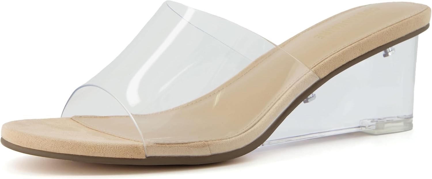 Step into effortless style with the CUSHIONAIRE Women's Gloss Clear Wedge Sandal. Featuring a sleek, transparent upper strap, this sandal creates a chic, barely-there aesthetic that complements any look. The cushioned footbed with memory foam, delivering personalized support and all-day comfort. A clear wedge heel provides just the right amount of lift with a lightweight, modern feel, making it ideal for long wear. Designed for easy slip-on wear, the Gloss sandal transitions seamlessly from casual outings to tropical vacations or dressy evening events. Add a touch of elegance and versatility to your wardrobe with this trend-forward wedge that pairs effortlessly with any outfit.