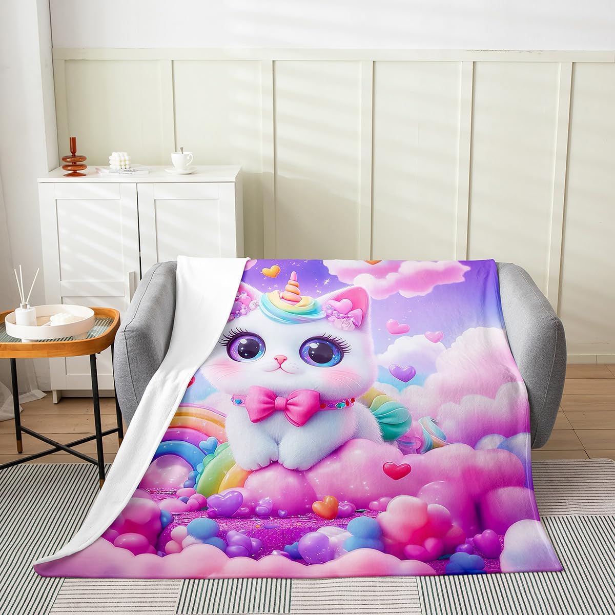 Package Include: 1 pcs flannel blanket Blanket throw simply decorating your rooms any time you want, bringing you fresh feel for year round use Material: Made from 100% polyester, soft. Size Information: Baby size: 1 Blanket Throw 30 x 40 Inch 40 x 50 size: 1 Blanket Throw 40 x 50 Inch Thow size: 1 Blanket Throw 50 x 60 Inch Twin size: 1 Blanket Throw 60 x 80 Inch Queen size: 1 Blanket Throw 90 x 90 Inch Personalize your bedroom: Beautiful design and colorful print, makes your bedroom unique and brings you a wonderful dream Washing instructions: Machine wash separately in cold water,hang dry, do not bleach Occasion: The cute soft blanket throw designed for children, adult, men, women, teens. This blanket throw is also suitable for all seasons, spring, summer, autumn and winter