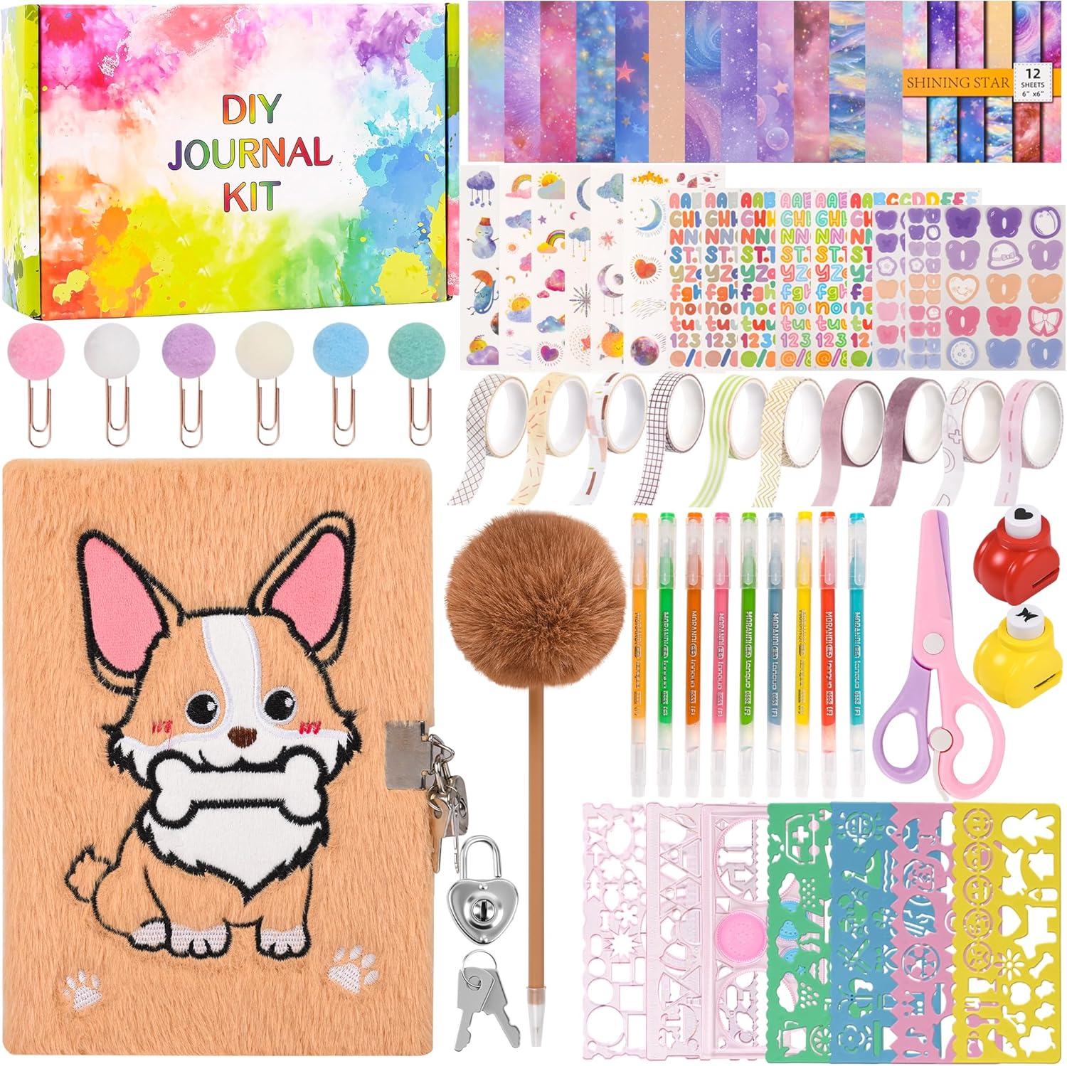 Cute and Fun Diary Set: Our diary set includes plush diary, 12 sheet scrapbook paper, 6 letter sticker, 6 weather sticker, 3 butterfly sticker, 7 journal stencils, 9 journal pens, 1 pom pom pen, 15 washi tape set, 6 paper clip, 2 craft hole punch shapes and 1 safety scissors. They are packed in a cute box. It is a set of fluffy product kits that love. It is the best gift you can give. Interesting Diary: Our butterfly diary comes with 1 metal lock and 2 keys to protect the private thoughts and precious memories. It also includes a plush pen that a soft and comfortable plush ball on top of the ballpoint pen. While keeping a diary, you can relax. Rich diary accessories: Our diary set offers you scrapbook paper with starry sky theme, letter stickers, weather stickers, butterfly stickers and washi tape sets. These accessories with different styles and themes can perfectly decorate your diary. journal stencils, paper clip, craft hole punch shapes and safety scissors, these manual tools provide efficient assistance for planners. Unique Gift: Our diary set comes with a cute packaging box, making it a beloved gift. Who love plush products, this is the best gift to give to daughters, nieces, friends or sisters. Its charming design and practical features make it a precious gift that inspires creativity. Encourage Self Expression: Teen will be more passionate about writing on this beautiful diary with cute pom pom pens and shiny decorations. Let them not only be a diary, but also serve as an emotion tracker and a travel plan. This item is not intended for uesr under 16 years old.