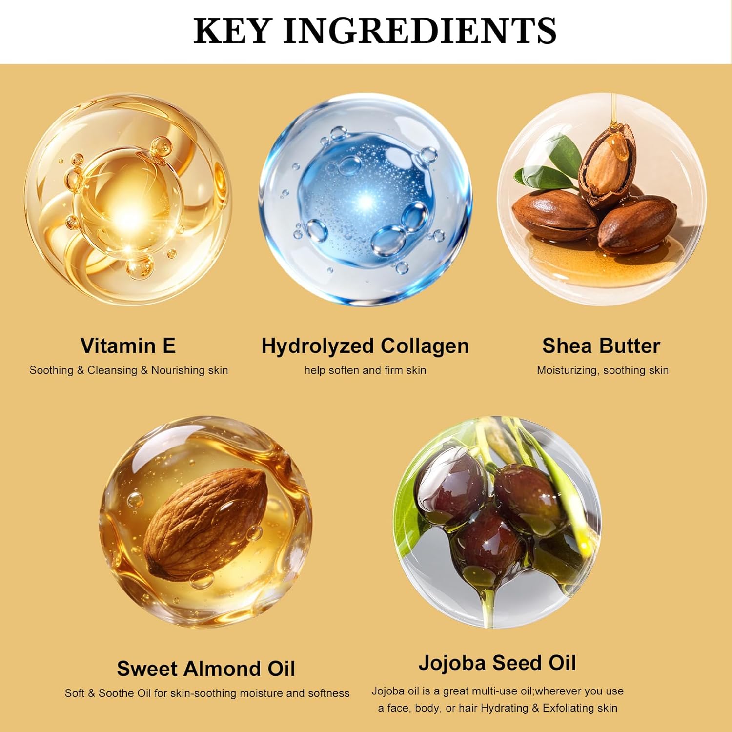 | Active Ingredients | Formulated with Shea Butter, Essential Oils and Vitamin E which are rich in moisture and Nourishing skin, vitamin_e |