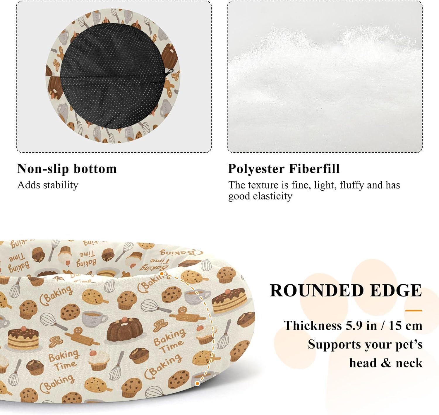 Material: Polyester + Filled Fiber + Drip Plastic. Our Dog Pillow Bed is designed in a donut style and made of soft plush fabric, which has a fine and smooth touch and can bring a warm and comfortable feeling to pets.Product Design: The overall shape is circular, with smooth and gentle lines, which conforms to the Safaris of pets who like to curl up and can give pets a full sense of security. Dog Pillow Bed edge part will slightly bulge, forming a soft cushion that pets can lean on and also prevent them from rolling off while sleeping.Lightweight And Portable: This comfortable bed is light in weight, making it convenient for travel. It is very convenient for transportation and can be easily carried in the car. This Dog Pillow Bed can keep your pet comfortable when camping and traveling outdoors.Easy To Care: Can be hand-washed or machine-washed. A machine-washable Dog Pillow Bed makes it easier for your pet to stay in a comfortable and clean sleeping space.