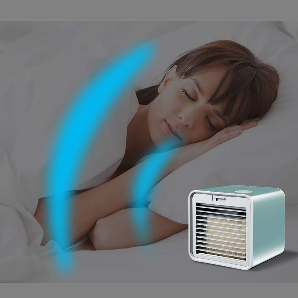 Specification: Product Name: Mini Cooling Fan Product material: ABS+PC Product weight: 1290G Name: Air cooler Color: black, green Power interface: USB Water tank capacity: 380ml Product size: 16*16*16cm Rated power: 10W Working power DC5V current: 2A Product advantages 1. Super wind power. 2. No water leakage when moving. 3. Large water tank capacity. Product list: air cooler*1, USB data cable*1, manual*1