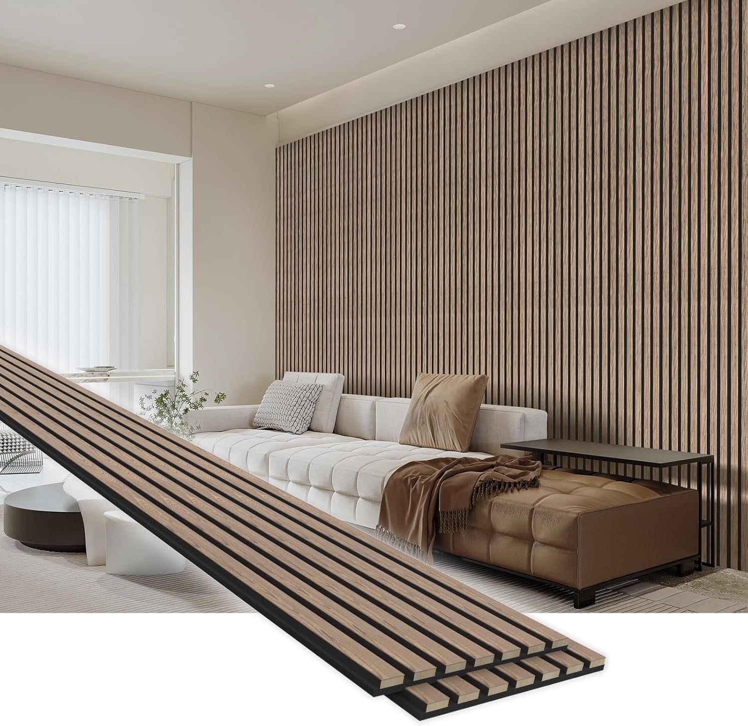 RITOLLO Wood Panels for Wall, 108"×11" Acoustic Wall Panels for Interior Decor, 3D Wood Slat Sound Absorbing Wooden Paneling for Living Room Bedroom, Walnut 2 Pack