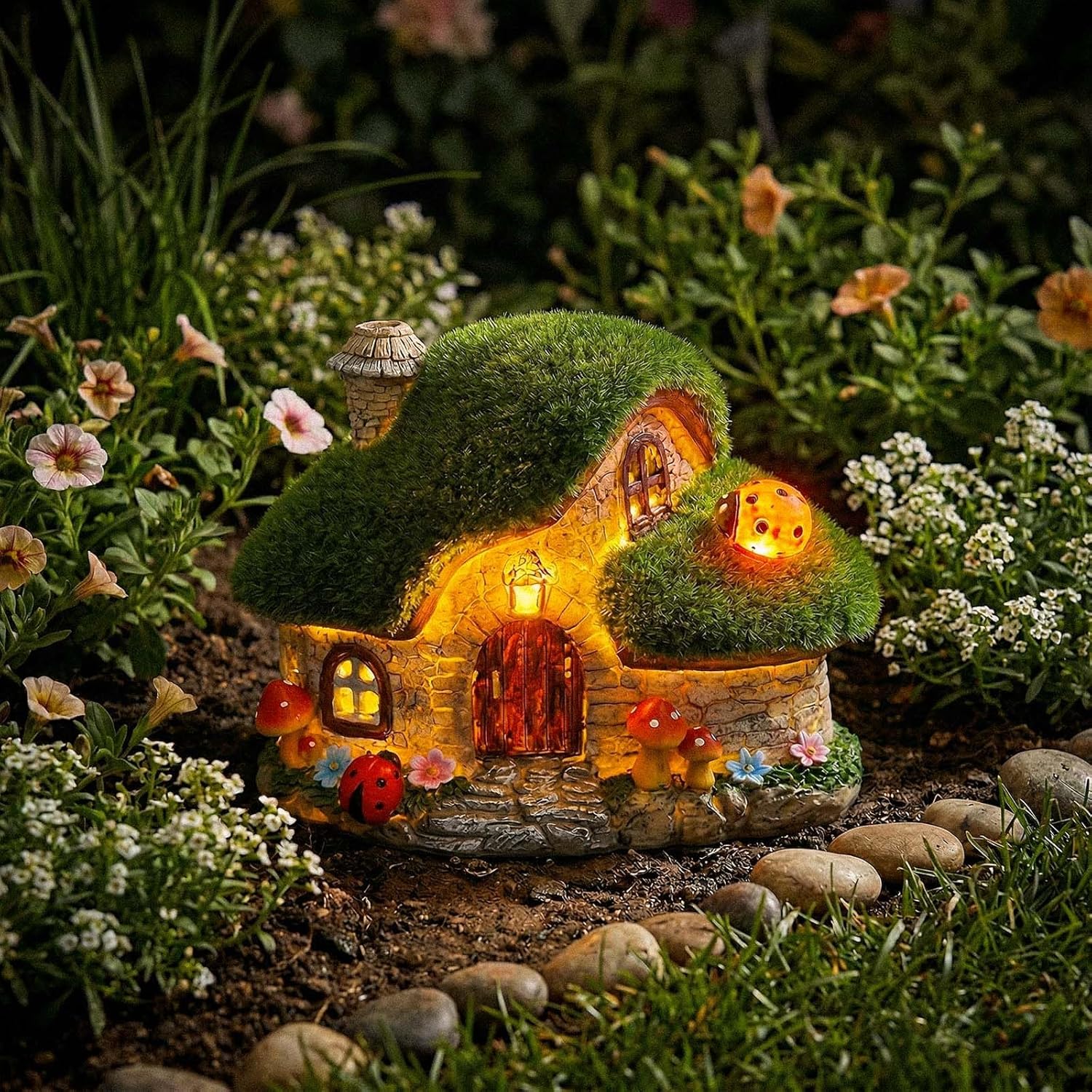 Add a Dash of Good Fortune to Your Secret Garden!Welcome to the luckiest corner of the forest. Our Solar Ladybug Fairy House is designed for those who believe in magic and beauty. As evening falls, the giant ladybug on the roof comes to life, radiating a soft red glow that complements the warm amber lights from the windows below.Every detail is a labor of love—from the hand-painted stone textures to the soft, green flocked moss that covers the roof. It’s not just a decoration; it’s a tiny sanctuary for the imagination.Why Gardeners Love Our Ladybug House:Eco-Friendly Illumination: High-efficiency solar panels provide 5-6 hours of light on a single charge during the summer; however, in winter—due to low temperatures and shorter daylight hours—their operating time may be limited to just 2–4 hours.Superior Craftsmanship: Each piece is hand-finished, ensuring your garden has a unique work of art.Stress-Free Maintenance: No wiring, no batteries, and no fading. Just place it, forget it, and enjoy the glow.Product Specifications:Theme: Ladybug & Stone Cottage & MushroomMaterial: Premium Weather-Resistant ResinLight: Red & Warm Yellow LEDsWaterproof: IP65 Rated