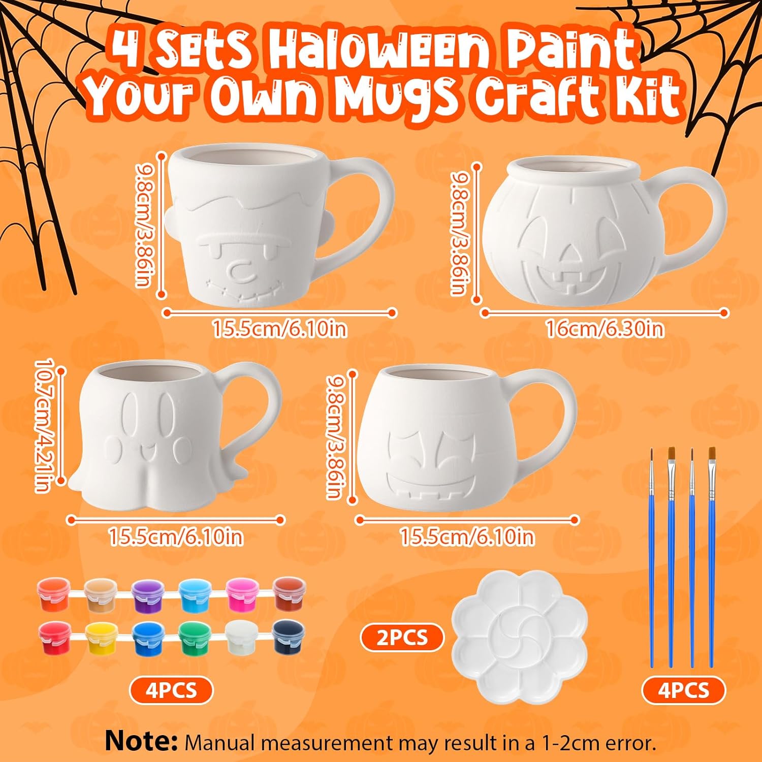 | Included Components | 4 blank ceramic mugs, 2 paint sets (each including 2 paint strips, 1 palette, 2 brushes) |